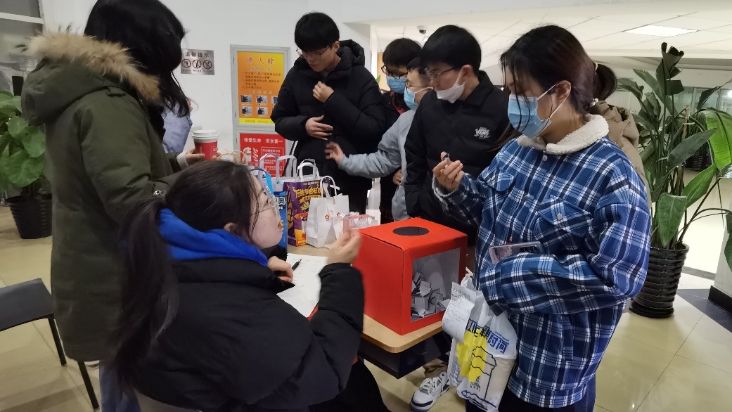 本次活动分为玩游戏集印章和抽取礼品两个部分。本次活动共设有“跳跃的大脑”“进阶版绕口令”“曲库检索”“123看这边”“定点投篮”和“黑暗勇士”6个极具挑战性的小游戏。活动过程中大家踊跃参与,在游戏中充分展现自己敏捷的反应能力、敢闯敢拼的魄力以及丰富的歌曲储备。挑战成功的同学满怀喜悦地鼓舞身边的同伴积极尝试,活动现场洋溢着祥和欢快的氛围。同学们每挑战成功一个小游戏,即可获得一枚印章,集齐6枚印章后即可参与抽奖活动。活动的礼品由所有参与者提前准备,然后交由活动主办方保管,集齐所有印章的同学可随机抽取礼物“盲盒”,最终每位同学都可以通过自己的努力获得其他同学精心准备的礼物,可谓是期待满满,惊喜连连。