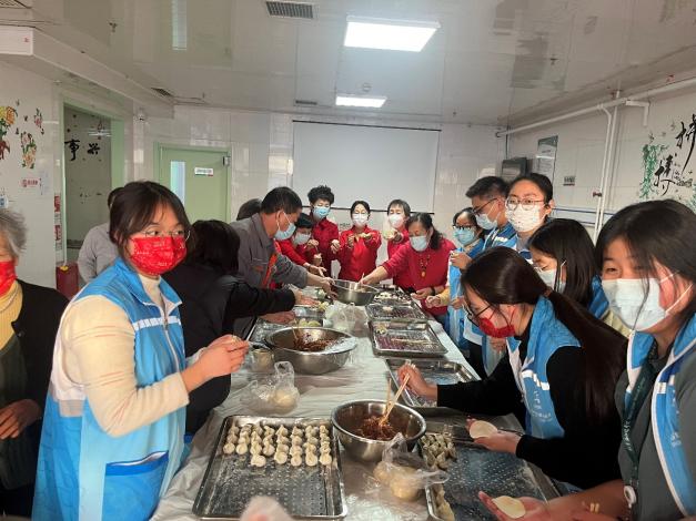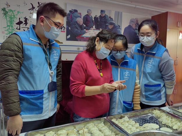 随后,大家围聚一团开始包饺子。老人们和舞蹈队阿姨们主动向同学们传授包饺子的技巧,盈盈笑语间更显温馨和谐。这个环节不仅能够增强老人的体验感,还可以让他们在动手操作中增添节日的乐趣。最后,大家一起为老人们送上冬至的祝福和问候。志愿者通过亲切地交谈,了解他们的生活状况,并祝愿他们身体健康、生活幸福。