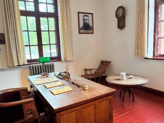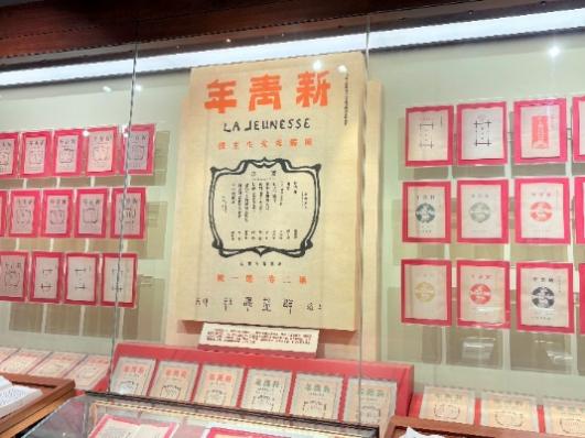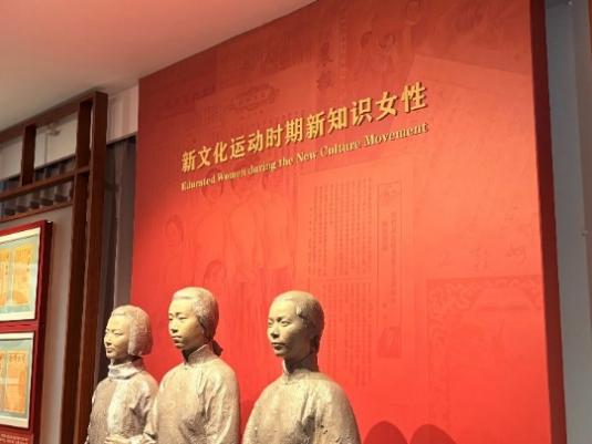 玻璃展柜中泛黄的《新青年》杂志、斑驳的游行照片,将大家带回那个觉醒年代。看到新文化运动时期知识女性的雕塑,同学们情不自禁肃然起敬。路过李大钊同志办公场所,他伏案工作的画面仿佛历历在目。