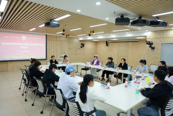 下午专家组到东单校区吴宪大楼组织召开校院两级教学指导委员会和教学督导委员会委员代表,院校管理人员代表、教师代表、毕业生和用人单位代表,以及不同年级学生代表等7场座谈会,对学校护理学专业进行全面深入的认证考察。