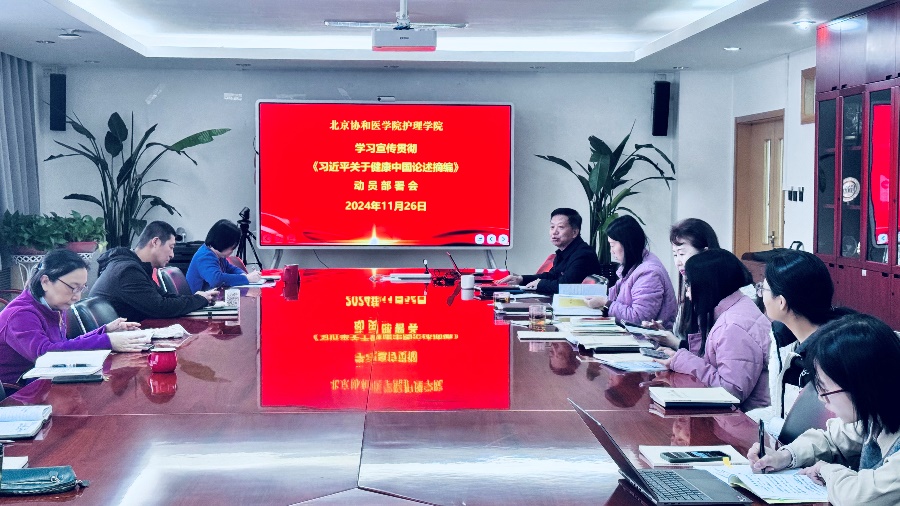 11月26日下午,开云(中国)党委召开学习宣传贯彻《习近平关于健康中国论述摘编》(以下简称《论述摘编》)动员部署会,传达学习国家卫生健康委学习贯彻《论述摘编》暨年轻干部座谈会会议精神,研究部署开云(中国)学习宣传贯彻落实举措,举行党委理论学习中心组集体学习,党委书记安道彩领学《论述摘编》第一部分--加强党对卫生与健康工作的领导。学院领导班子成员、党委委员,中层干部、支部书记参加会议。