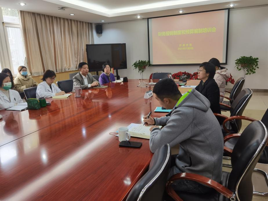 培训主要分为三部分。首先栗云静副处长对院校报销管理制度进行解读,有针对性地就学院报销较多的业务进行场景再现,王丁老师介绍了编制预算的重要性和编制要点。在交流环节与会人员就平时在报销和预算编制中所遇到的实际问题与栗云静副处长和王丁老师进行深入沟通互动。