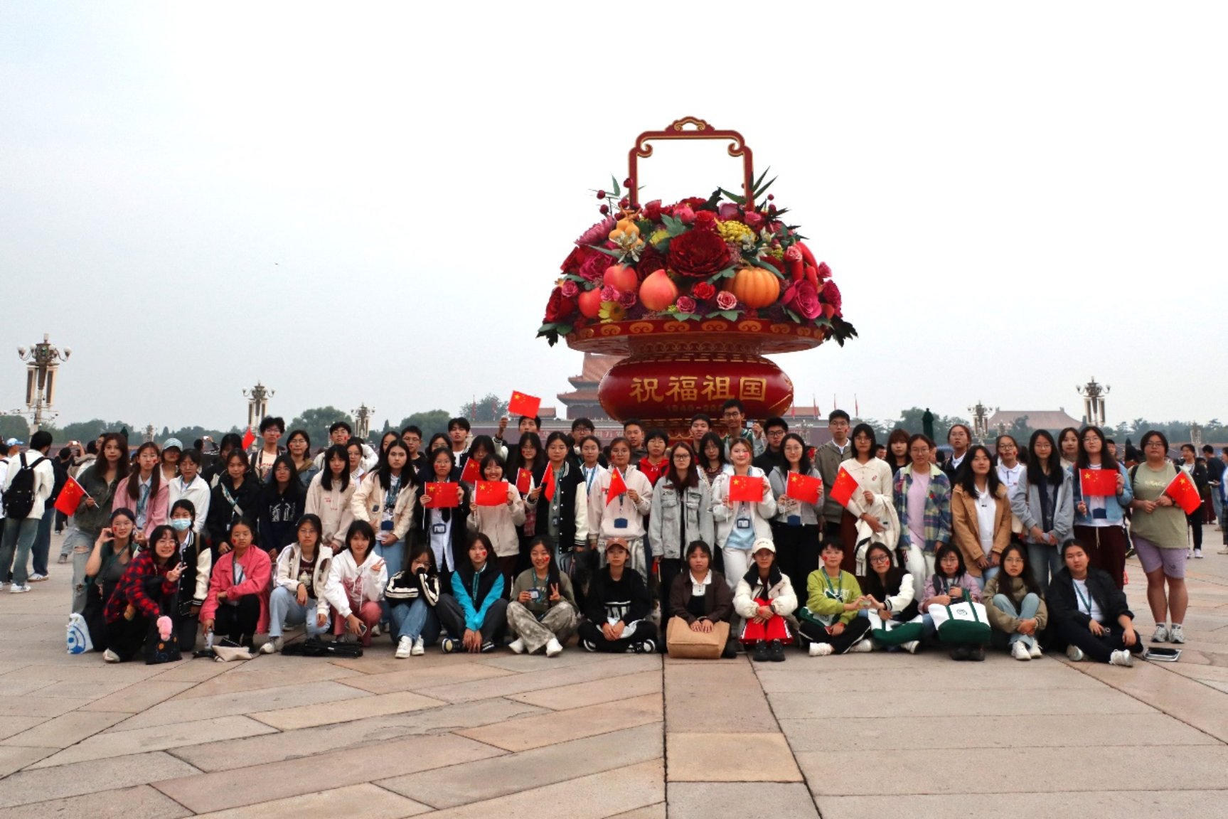 秋风阵阵,夜色渐淡,同学们早早来到天安门广场,满怀期待地等待着升旗仪式的开始。随着天空的第一缕曙光,仪仗队员以铿锵有力的步伐缓缓步入广场,广场上人头攒动,同学们激动地翘首以盼,天安门城楼在晨光中显得格外庄严。护旗手展开鲜艳的五星红旗,国旗在万众瞩目的注视下缓缓升起,同学们齐声歌唱国歌,将满腔的爱国热情融入歌唱之中。升旗仪式在短短46秒中结束,神圣的时刻短暂,但在同学们心中将永远留存。漫长的等待迎来了几十秒的心灵震撼,同学们真切地感受到与祖国同呼吸、共命运的幸福与自豪。