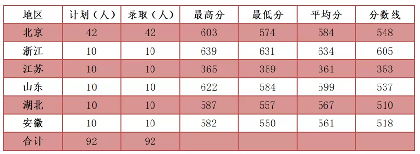 2016年护理学专业本科班计划招生92名,实际录取学生92名,计划完成100%。分布在北京、浙江、江苏、山东、安徽、湖北6个省市。