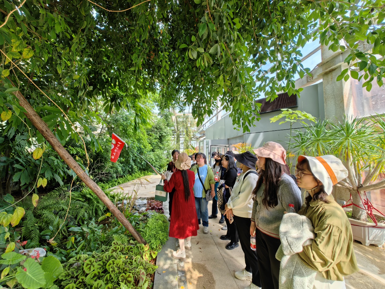 随后,大家来到药用植物研究所药植园和室内名贵药材园。药植园内收集了1300余种药用植物,还配备了大型种质低温贮藏库及各类专业实验室,培植的各种中草药,形态各异,散发出淡淡的药香。名贵药材园更是令人惊叹,园内展示了人参、灵芝、石斛等珍贵药材,日常生活中那些熟悉的中草药名字,如杜仲、茱萸、连翘、黄连、五味子、党参……此时此刻具象化了,生机勃勃。这些药材不仅具有极高的药用价值,还体现了中医药文化的深厚底蕴。